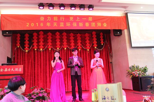 2016年2月4日,公司在金嘉力大酒店舉行了2016年新春團拜會。會上,公司創(chuàng)始人發(fā)表了題為《奮力前行 更上一層》的重要講話,表彰了2015年度杰出貢獻獎、天藍之星、天藍新星和特別獎,員工們表演了精彩的文藝節(jié)目。